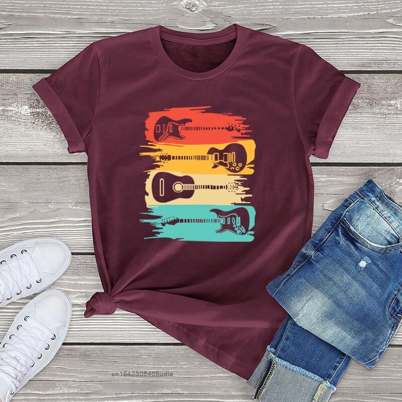 Classic Colorful Guitar print tshirt